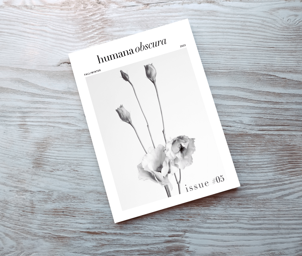 The Fall/Winter 2022 issue of Humana Obscura features work by 82 new, emerging, and established contributors from around the globe, as far as New Zealand, The Netherlands, Germany, Malaysia, Scotland, Mexico, Greece, and throughout the United States and Canada.