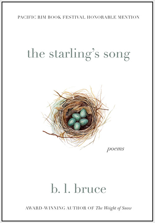 The Starling’s Song was written entirely during a four-week-long stay in a rustic cabin in the remote forests of Northern California, where this unique backdrop guided much of her work in this collection.